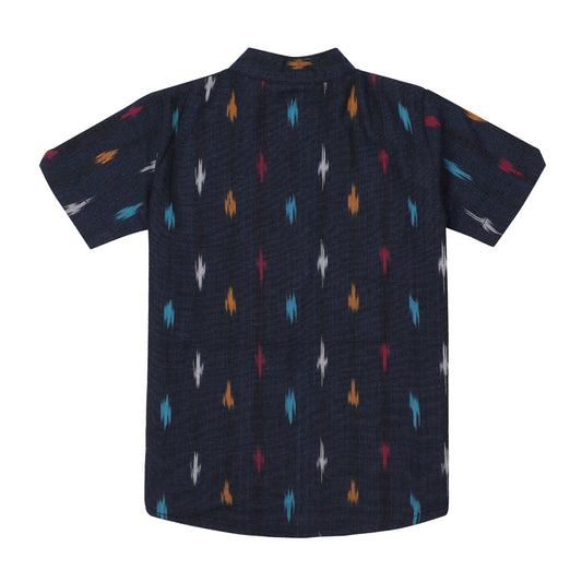 Cotton t-shirt for Boys | Chinese Collar - Ikat Weave | Blue