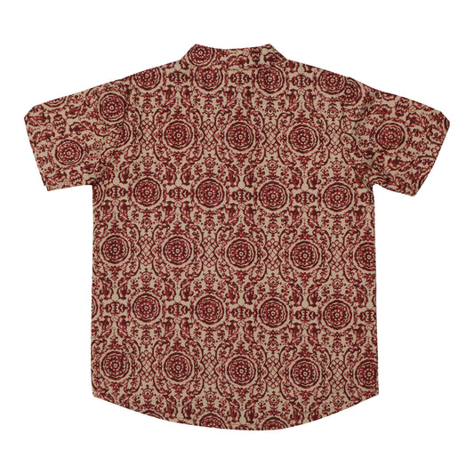 Cotton t-shirt for Boys | Chinese Collar - Classic Print | Maroon