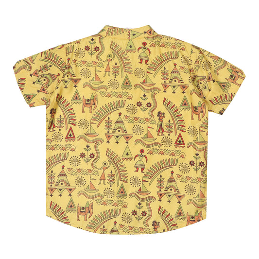 Cotton t-shirt for Boys | Chinese Collar - Madhubani Print | Yellow