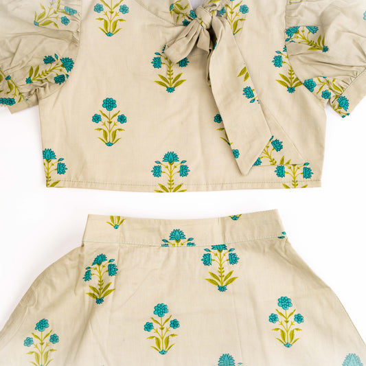 Cotton Maxi Dress for Girls | Half Sleeve - Floral Print | Pastel Green