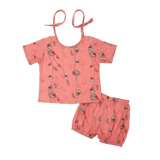 Cotton Jhabla Set for Infants | 2 Piece - Floral Print I Pink